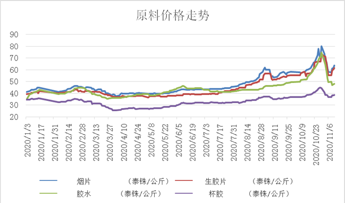 原料方面:前期原料价格大幅下挫后,本周原料止跌企稳,泰国主产区原料价格继续上涨,且烟片及生片价格均有明显涨幅。