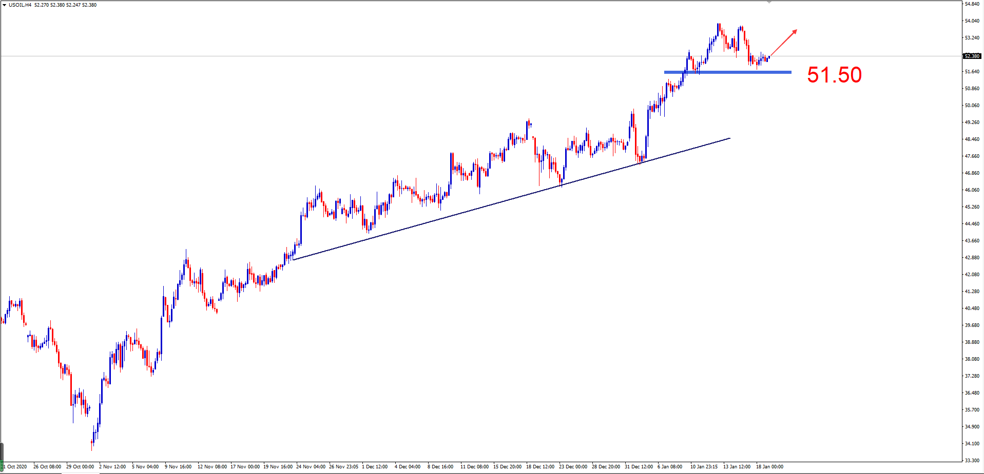 【技术点评】:H4周期显示,原油位于多头上行趋势中陷入高位宽幅震荡,多头趋势明显。建议投资者可考虑做多机会。